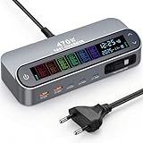 - [ 6-in-1-Ladezentrum ] -- Dieser USB-Mehrfachadapter ist mit 2 × 140 W + 1 × 65 W USB-C-Anschlüssen und 2 × 30 W USB-A-Anschlüssen ausgestattet. Im Vergleich zu Standardmodellen verfügt er über eine zusätzliche Zeit- und Datumsanzeige und dient somit mehreren Zwecken. Zudem ist er perfekt kompatibel mit Laptops, iPhones, iPads, Tablets und verschiedenen anderen Geräten