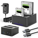 - 【5 Gbit/s Dual-Laufwerk mit hoher Lese-/Schreibgeschwindigkeit】Mit einer enormen Kapazität von 32 TB unterstützt es gleichzeitige Lese-/Schreibvorgänge auf zwei Festplatten (maximal 16 TB pro Laufwerk) und ist sowohl mit 2,5-Zoll- als auch mit 3,5-Zoll-SATA-HDDs und SSDs kompatibel. Ausgestattet mit UASP-Funktionalität bietet es eine um 70 % höhere Lesegeschwindigkeit und eine um 40 % höhere Schreibgeschwindigkeit im Vergleich zu herkömmlichem USB 3.0.