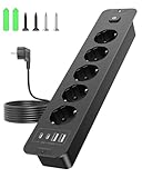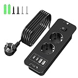 - Schnelllade-Steckdosenleiste mit 2M Kabel: 2 USB-A-Anschluss, der bis zu max. 3,4 A Ladestrom liefern kann. 2 USB-C-Anschluss, der PD 20W Schnellladung bietet. Die 3 Fach AC-Steckdose hat eine hohe Leistung von bis zu 3840 Watt (max. 240 V, 16 A) und kann mehrere Geräte gleichzeitig schnell aufladen. Das 2-Meter-Kabel ist bequemer zu installieren: Sie können es überall dort platzieren, wo Sie es brauchen.