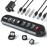- 【Separate LED-Kontrolltasten】Der USB Hub mit Netzteil ist mit 4 individuellen Ein/Aus-LED-Schaltern für eine einfache Kontrolle jedes USB-Ports ausgestattet, was Ihnen die Mühe erspart, Ihre Geräte auszustecken, wenn sie nicht benötigt werden.