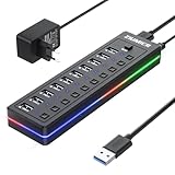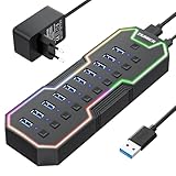 - [Erleben Sie 5Gbps Hyper-Speed-Übertragung] Schöpfen Sie das volle Potenzial unseres USB 3.0-Hubs mit 10 Anschlüssen aus. Synchronisieren Sie mühelos Daten und übertragen Sie große Dateien sofort mit der zehnfachen Geschwindigkeit von USB 2.0, um Ihren Workflow zu optimieren und Wartezeiten zu vermeiden.