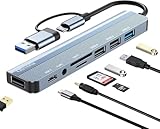 - 【Zwei-Kopf-Design】Dieser 8-in-1 USB Hub verfügt über ein Dual-Head-Design, das sowohl USB- als auch USB-C-Anschlüsse unterstützt, um mehr Gerätetypen für eine einfachere Nutzung zu ermöglichen. Er ist für Laptops, Tablets, Smartphones und andere Geräte geeignet, um Ihre täglichen Anforderungen zu erfüllen.