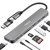 - 2 Connectors & 8 Ports - Omivine 8-IN-2 USB 3.0 Hub bietet 8 zusätzliche Ports für Ihre Geräte: 1XUSB3.0, 3XUSB3.0, 1XUSB-C, 2XSD & Micro SD card reader,1X3.5mm audio port. Sie können ganz einfach verschiedene Geräte wie Tastatur/Maus/Drucker/Kamera/Lautsprecher/Festplatte/Game-Controller/Desktop-Lüfter/Kartenleser, etc. anschließen. Machen Sie sich keine Sorgen mehr, dass Sie nicht genügend Anschlüsse an Ihrem Computer haben! Hinweis: Dieses Gerät unterstützt keine Aufladung!