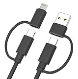 - (4-in-1-Multifunktionsdesign) Dieses 4-in-1-USB-C-Multi-Ladekabel unterstützt USB-C auf USB-C, USB-C auf Lightning, USB-A auf Lightning und USB-A auf USB-C. So können Sie mehrere Geräte mit nur einem Kabel laden und Kabelsalat vermeiden.