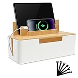 - 【Praktisches Design】: Unsere steckdosen box hat eine große Kapazität, die gleichzeitig die Anforderungen Ihres USB-/Tablet-/Mobiltelefonkabels erfüllen kann, außerdem verfügt unsere kabel box organizer im Vergleich zu der kabelsammler auf dem Markt auch über eine spezielle Rille für die Aufbewahrung elektronischer Geräte, um Unordnung beim Aufladen Ihrer elektronischen Geräte zu vermeiden.