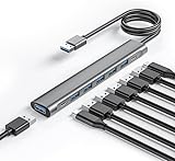 - 7 Anschlüsse für maximale Konnektivität: Datenhub USB erweitern Sie Ihren Computer um 7 zusätzliche USB 3.0 Anschlüsse und schließen Sie mehrere Geräte wie Tastaturen, Mäuse, Festplatten oder Drucker gleichzeitig an. Ideal für Büro, Zuhause und unterwegs.