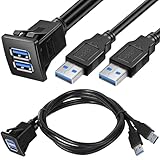 - 【5Gbps/PD60W】Eingebetteter USB C Stecker auf Buchse Snap In Montage Anschluss Auto Armaturenbrett Verlängerungs kabel, das Unterstützt 5Gbps Datenübertragung, PD 60W (Max 20V/3A) Schnellladung.