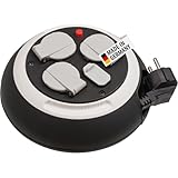- Handliche und standfeste Mini-Kabeltrommel mit 3 Schutzkontakt-Steckdosen mit selbstschließenden Deckeln, einem Überhitzungsschutz und erhöhtem Berührungsschutz