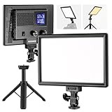- 【Vielseitiges LED Videoleuchte Panel Bausatz】 Das 9" LED Video Licht verfügt über 58 warme und 58 kalte LEDs und liefert maximale Leistung von 10W mit einer maximalen Beleuchtung von 0,5m und einem hohen Farbwiedergabeindex (CRI) von 95+, ideal für Porträts, Live Streaming usw. Außerdem mit einem Ministativ zur Höhenverstellung, einem Cold Shoe Adapter zur Winkelpositionierung, einem USB Kabel und einer eingebauten 4000mAh Lithiumbatterie zum Aufladen. Hinweis: Tragetasche ist NICHT enthalten