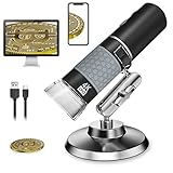 - Upgraded 10X-200X Digital Magnification:Handy mikroskop mit +2MP Kamera basierend auf seiner 1080P Bild- und Videoauflösung. Damit können Sie die kleinsten Details der Probe, wie Pflanzen, Münzen, Diamanten, Schweißen, usw. betrachten. Verlassen Sie sich auf 8 einstellbare LEDs, die auch im Dunkeln für ausreichend Beleuchtung sorgen.