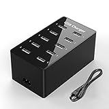 - Multi-USB-Buchsen-Design: 10 USB-Buchsen mit bis zu 50 W können 10 verschiedene Geräte gleichzeitig aufladen und lösen die peinliche Szene unzureichender Stecker beim Laden mehrerer Geräte. Keine Notwendigkeit für zusätzliche Adapter, nur ein einziges USB-Kabel kann Ihr Gerät aufladen.