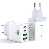 - [4 Ports Ladestecker] 2 x USB-C +2 x USB-A. Handliches Ladegerät für alle Handys geeignet. Das 4 Port Setup ermöglicht Lädt mehrere Geräte zuverlässig und gleichzeitig auf, wie Tablets, Smartphones, Kopfhörern und anderer Geräte.Nicht mehr das entsprechende Ladegerät für jedes Gerät zu tragen.