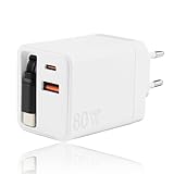 - Usb c ladegerät 80W: Das Mehrfach usb c ladegerät mit kabel liefert über ein Type-C/Type-C-Kabel eine maximale Ausgangsleistung von 80 Watt und ist die beste Alternative zum original schnellladekabel usb c. Das 80W Ladegerät wurde auf integrierte, verstellbare, 70 cm lange einziehbare USB C Datenkabel aufgerüstet.Lädt für Iphone 15 und Samsung S23 von 0 auf 60% und MacBook Pro 14 auf 40% in nur 30 Minuten