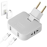 - Adapter USA auf EU:Der Mehrfachsteckdose mit 2 Stück USB wandelt AC-Stecker von US (2 flache Stifte) in europäische (2 runde Stifte) und von Typ A/B in Typ E/F um.
