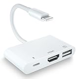 - 【Vielseitiger 3-in-1 Lighting HDMI Adapter】Mit diesem Lighting HDMI Adapter können Sie Ihre iPhone- oder iPad-Bildschirme auf größere Displays übertragen. Inklusive USB OTG Anschluss für einfache Peripheriegeräte und Ladefunktion für ununterbrochene Nutzung. Perfekt für Präsentationen und Medienwiedergabe.