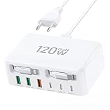 - 120W USB C Netzteil mit Einziehbares Ladekabel: Das power netzteil usb c ist mit zwei verstellbare Kabel (Typ-C und für iOS-Geräte). Das einziehbare Design ermöglicht eine platzsparende Aufbewahrung ohne Kabelsalat. Einfach das Kabel mit dem Finger herausziehen – es rastet ein. Nach Gebrauch löst ein weiterer Zug das automatische Einziehen aus. Perfekt für unterwegs, da Sie so immer Ihr Kabel dabei haben.