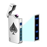 - ✨Batterieanzeige und Wieder Aufladbar: Das Plasma Feuerzeug kann den Batteriestand in Echtzeit anzeigen. Die usb-feuerzeug-anzeige leuchtet beim laden. Die digitale Leistungsanzeige an der Seite zeigt die verbleibende Leistung und den USB-Ladestatus des Feuerzeugs an. Wenn die Macht niedrig ist, können Sie es in der Zeit aufladen.