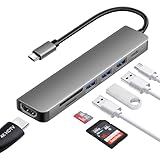 - Vielseitige 7-in-1-Erweiterung: Dieser USB C Hub Multiport Adapter verwandelt einen einzigen USB-C-Anschluss in 7 praktische Anschlüsse, darunter 1 USB-C-PD-Port, 1 USB 3.0-Port, 2 USB 2.0-Ports, einen 4K-HDMI-Ausgang sowie SD- und TF-Kartenleser. Perfekt für Multitasking und Produktivität.