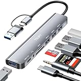- 【Dual Interface Design】Unser multi port multifunktions hub verfügt über ein Dual-Head-Design, das sowohl USB-A- als auch USB-C-Schnittstellen unterstützt. Er ermöglicht eine mühelose Verbindung zu einer Vielzahl von Tablets, Laptops, Smartphones und anderen Geräten, z. B. MacBook Pro/MacBook Retain/MacBook Air oder Mobiltelefonen/Tablets. Das spart Übertragungszeit und das lästige wiederholte Ein- und Ausstecken von USB-Sticks.