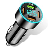 - Intelligente LED-Voltmeteranzeige: Das Zigarettenanzünder USB C Ladegerät ist mit einem hellen LED-Digitaldisplay ausgestattet, das die aktuelle Batteriespannung Ihres Autos in Echtzeit anzeigt. So behalten Sie jederzeit die Kontrolle über den Zustand Ihres Fahrzeugs und vermeiden Spannungsprobleme beim Starten oder Fahren