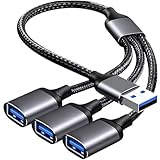 - Vielseitiger USB Splitter 1 zu 3: Mit diesem USB Kabel 1 Stecker auf 3 Buchsen erweitern Sie Ihren Anschluss ganz einfach um drei Ports – ideal für Laptop, PC oder Spielkonsole. Der USB Verteiler bietet 1x USB 3.0 mit bis zu 5Gbps Geschwindigkeit und 2x USB 2.0 Anschlüsse mit 480Mbps für gleichzeitiges Laden und Datenübertragung.