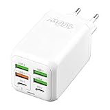 - 【6 in 1 Praktische USB C Ladegerät】Der USB Schnellladegerät kommt mit 2 USB C Ports, 2 USB A Ports, QC und PD (PPS) Ports. Wenn Sie 6-Geräte anschließen, verteilt sich das USB-C-Ladegerät mit einer maximalen Ausgangsleistung von 50W effizient zwischen den Anschlüssen, um Wartezeiten zu minimieren.