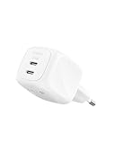 - GLEICHZEITIGES LADEN IHRER GERÄTE: Anders als andere Ladegeräte, die nur einen Ladeanschluss haben, verfügt dieses 50 W USB Netzteil über zwei USB-C-Anschlüsse, sodass bis zu 2 Geräte gleichzeitig aufgeladen werden können. Laden Sie Ihren Laptop, und Ihr Smartphone oder andere Geräte gleichzeitig.