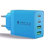 - Praktisches 4-in-1 Netzteil: Mit zwei USB-C und zwei USB-A Anschlüssen können mehrere Geräte gleichzeitig geladen werden – perfekt für Familie, Büro oder unterwegs.