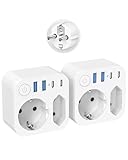 - Steckdosenadapter 2Fach: 1 AC Schuko-Steckdose und 1 Euro-Buchse. 2 USB A+2 USB C, Sie können 6 aufladen elektronische Geräte gleichzeitig. Steckdose ohne kabel ist platzsparend und hält Ihre Sachen in Ordnung.