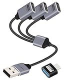 - 【3-fach USB-Hub】Dieser USB A Splitter (USB-Stecker auf 3 USB-Buchsen) ermöglicht als 3 in 1-Datenkabel die gleichzeitige Nutzung aller 3 Anschlüsse ohne Wartezeit bei der Datenübertragung. Mit USB A Buchse auf USB-Type-C-Stecker erweitert er Ihre USB Verbindungen für Handys, Computer und weitere Geräte. Unterstützt Anschlüsse für Drucker, USB-Laufwerke, Mäuse, Tastaturen, Wireless Wi-Fi-Adapter, Bluetooth-Empfänger und mehr.