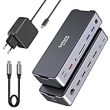 - 100W Power Delivery – effizient laden: Laden Sie Ihr Notebook zuverlässig mit bis zu 85W über den USB-C PD-Port.【15W der Gesamtleistung werden für den Eigenverbrauch des Docks reserviert. Für volle Leistung bitte ein 100W oder stärkeres Ladegerät verwenden. Netzteil nicht im Lieferumfang enthalten.】