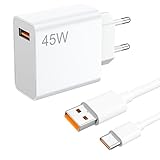 - 45W Ladegerät mit 1M Typ C Kabel: Das für Xiaomi USB Ladegerät unterstützt 45W Turboladen. Es dauert 52 Minuten, um das 45W XiaoMI Telefon auf 100 % aufzuladen. Voraussetzung ist, dass dieses 45W Ladegerät mit diesem XiaoMI 6A Kabel verwendet werden muss. Es unterstützt auch das Laden mit 45 W, 33W und 30W 18w für Xiaomi. Telefone mit einer Leistung unter 45W benötigen länger, um auf 100 % aufzuladen.