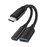 - Unterstützt Datenübertragung und Aufladen: Dieses 2-in-1-Lade-OTG-Adapter-Splitterkabel mit USB-C-Buchse und USB-A-Buchse. Es kann Datenübertragungsgeschwindigkeiten von bis zu 480 Mbit / s bieten und unterstützt auch bis zu 1,5 Ampere Ausgangsleistung.