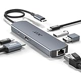 - 【6 in 1 USB C Hub】Erweitern Sie Ihren Laptop von einem USB C Port zu einem 4K HDMI Port, einem 1000M Gigabit Ethernet RJ45 Port, einem USB Typ C Power Delivery Ladeport und 3 USB 3.0 Ports. Alle Anschlüsse dieses USB-C-Hubs können gleichzeitig genutzt werden, sodass Sie Tastatur, Maus, USB-Treiber und externe Festplatten problemlos an Ihren Laptop anschließen können. Erfüllen Sie alle Ihre Arbeits- und Unterhaltungsbedürfnisse effizient. Paket enthält 1*6 in 1 USB C Hub, 1*Benutzerhandbuch.