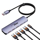 - Schnellere Geschwindigkeit mit USB 3.0: USB-3.0-Anschlüsse bieten Übertragungsgeschwindigkeiten von bis zu 5 Gbit/s, 10-mal schneller als USB 2.0. Dieser 7-Port-USB-3.0-Datenhub kann 1 USB-3.0-Port sofort auf 7 externe USB-3.0-Datenanschlüsse für Tastatur, Maus, Drucker, Festplatten und andere USB-Geräte erweitern.
