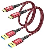 - USB 3.1 10 Gbps Datenübertragung:Das USB 3.1 Gen 2 USB C auf A Kabel unterstützt superschnelle Datenübertragung von bis zu 10 Gbps, übertragen Sie Filme, Lieder, Dateien oder HD Fotos in Sekunden. Abwärtskompatibel mit USB 3.0 und 2.0; Hinweis: unterstützt keine Videoausgabe.