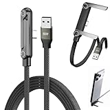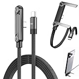 - Ergonomisches 90-Grad-Winkeldesign: Der Usb C Ladekabel Mit Ständer Abgewinkelte Stecker Reduziert Die Belastung Des Geräteanschlusses Und Liegt Gut In Der Hand – Perfekt Zum Spielen Oder Surfen Im Bett, Ohne Störende Kabelknicke, Die Das Kabel Beschädigen Könnten
