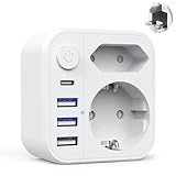 - 7 in 1 England Steckdosenadapter: 1 Schuko Steckdose, 1 Europäische Steckdose, 1 Hauptschalter; 4 USB Schnellladeanschlüsse: 3 USB-A + 1 Typ C. Kleine und kompakte Größe, einfach zu tragen und zu verwenden, Ein unentbehrlicher Travel Adapter.