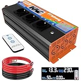- 【2000W/4000W (Peak)】2000W Wechselrichter, ultrahoher Umwandlungswirkungsgrad, 12V auf 230V, reduziert effektiv den Leerlaufverlust und den Betriebsstromverbrauch.