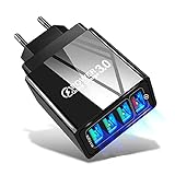 - 4 Ports Ladegerät Netzteil Schnellladegerät QC 3.0 Mehrfach USB Stecker Ladestecker Buchse Schnellladegerät Adapter Universal für iPhone Samsung Huawei Xiaomi HTC LG Motorola Honor IPad AirPods Etc