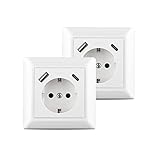 - Die USB-Steckdose verfügt über eine Schutzkontakt-Steckdose mit Shuttern für einen erhöhten Berührungsschutz sowie ein integriertes Netzteil mit 2 USB-Ladeports zum Laden von Smartphones oder Tablets