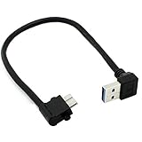 - Adapterkabel, um 90 Grad nach oben abgewinkelter USB 3.0-Stecker auf nach rechts abgewinkelten 10-poligen Micro-USB-Stecker, 20 cm.