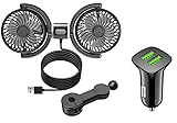 - 【USB-Autolüfter inkl. Auto-Ladegerät*1】- Versorgt über 5V-USB-Anschluss (kompatibel mit Powerbanks, Laptops und 12V-Steckdose Auto). Inklusive Auto-USB-Adapter für Reisen. Die doppelten Drehlüfterköpfe mit Hochleistungsmotor garantieren intensive Luftzirkulation - ideal für Hundekühlung im Auto und hitzeempfindliche Kinder.