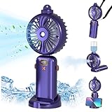 - [Multifunktional]:Einstellbares Tragbarer Mini Ventilator mit fünf Geschwindigkeiten, geeignet für verschiedene Szenen im Innen- und Außenbereich.Verfügt über einen Sprühmodus für lang anhaltende Kühle an heißen Sommertagen, Der Sockel trägt nicht nur den Handventilator mit Wasserkühlung Klein, sondern kann auch als Handyhalterung verwendet werden.