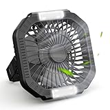- 【3-Gang-Geschwindigkeits-Schreibtischventilator mit Lichter】 Der Clipventilator verfügt über 3 einstellbare Geschwindigkeiten, eine Taste zur bequemsten Windgeschwindigkeit. Der persönliche Ventilator mit 8 LED-Perlen, ein schönes Camping-Zubehör bietet ideale Lichtquelle in der Nacht. LED-Display kann Geschwindigkeit und verbleibende Akkukapazität während des Ladevorgangs anzeigen. Hinweis: Helligkeit kann nicht eingestellt werden