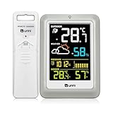 - [Hochpräzis, °C/°F Einstellung] Die Wetterstation sind mit einem hochpräzisen Sensor für Genauigkeit ausgestattet. Innen Temperaturmessbereich : -9.9°C~ 50°C(14.2°F ~ 122°F), Genauigkeit der Temperaturmessung : +/-1°C, Genauigkeit der Feuchtemessung : +/-5%. Außen Temperaturmessbereich : -50°C~70°C (-58°F~158°F).