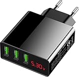 Eaxus® USB Ladegerät 3A - 3 Port Handy Netzteil mit LED-Display & Schnellladefunktion, Schwarz