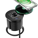 - Versenkbare Steckdose mit Induktion: Ordnung für Ihren Schreibtisch! Unsere Einbausteckdose ersetzt sperrige Steckdosenleisten und beseitigt Kabelsalat: 1 Schuko-Steckdose (2500W/10A), 15W kabelloses Laden, USB-C (PD30W) und USB-A (QC18W) für schnelles Aufladen von Geräten. Perfekt für Arbeitsplätze, Schreibtische und Möbel – saubere, unaufgeräumte Oberflächen garantiert!