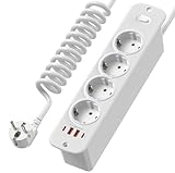 - Schnelllade-Steckdosenleiste mit 2M Kabel: 2 USB-A-Anschluss, der bis zu max. 3,4 A Ladestrom liefern kann. 2 USB-C-Anschluss, der PD 20W Schnellladung bietet. Die 3 Fach AC-Steckdose hat eine hohe Leistung von bis zu 3840 Watt (max. 240 V, 16 A) und kann mehrere Geräte gleichzeitig schnell aufladen. Das 2-Meter-Kabel ist bequemer zu installieren: Sie können es überall dort platzieren, wo Sie es brauchen.