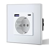 - 【3 in 1 Funktionalität】:Profitieren Sie von der vielseitigen Nutzung dieser Wandsteckdose, die eine Kombination aus herkömmlicher Steckdose und USB-C Schnellladegerät in elegantem Glasdesign vereint.